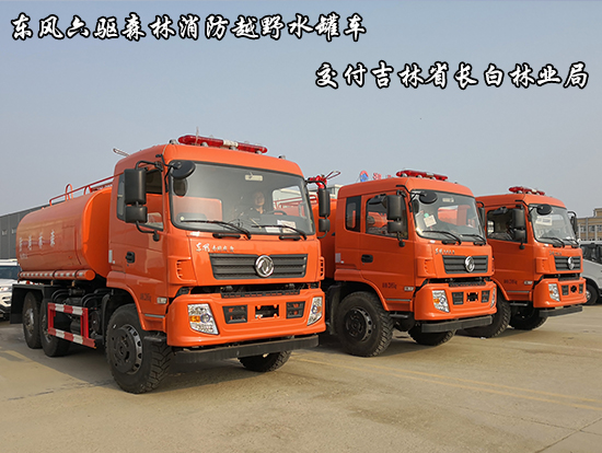長白林業(yè)局采購的六驅森林消防水車詳細配置:東風六驅越野SCS5225GPSEQ型消防水罐車:采用東風EQ2220GD5DJ型越野汽車底盤,東風D913豪華駕駛室,6×6驅動,康明斯ISB190 50國五發(fā)動機,六檔變速箱,315/80R22.5 20PR越野胎,軸距3500+1250mm,加厚雙層大梁,電動玻璃,方向助力,斷氣剎,ABS。罐體采用優(yōu)質碳鋼Q235板材,板材厚度4mm,罐體容積12.1立方,防浪板布置為三橫兩縱,罐體內做防腐涂刷環(huán)氧樹脂環(huán)保油漆,安裝夾心取力器,CB10/40型消防水泵,帶PS40消防高炮一個,射程≥55米,前沖后灑,后置工作平臺帶灑水炮,駕駛室頂部安裝長條警燈帶喊話器,全車顏色橘紅。