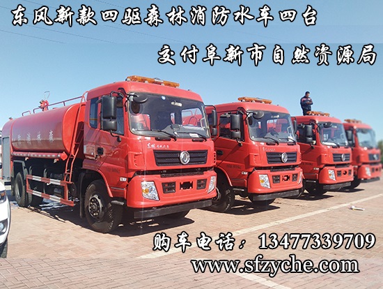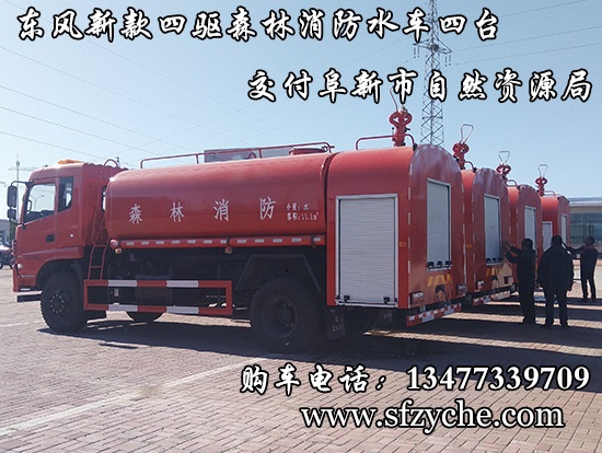 遼寧省阜新市自然資源局下屬的林業(yè)和草原局森林防火辦公室采購的東風(fēng)新款四驅(qū)森林消防水罐車具體參數(shù):東風(fēng)四驅(qū)越野森林消防水罐車_東風(fēng)11.1噸四驅(qū)消防水車_國五四驅(qū)越野森林滅火水車_東風(fēng)4×4越野SCS5183GPSEQ型四驅(qū)綠化噴灑車簡介:采用東風(fēng)EQ2180GD5DJ型越野汽車底盤,東風(fēng)153寬體駕駛室(選裝D913新款駕駛室),4×4驅(qū)動,康明斯ISB190 50國五發(fā)動機,六檔變速箱,東風(fēng)商用車橋,前驅(qū)動橋3.8噸,后橋10噸,10.00R20輪胎,軸距4500mm,電動玻璃,方向助力,斷氣剎,ABS。罐體采用優(yōu)質(zhì)碳鋼Q235板材,板材厚度4mm,罐體容積11.1立方,安裝夾心取力器,后置泵箱,消防栓接口左右各一個,消防炮采用PS30-50D消防水炮,流量40L/S/1.0MPa 水射程:≥50m,消防泵采用常壓消防泵型號:CB10/40車用消防泵,流量:40L/s,壓力:1.0MPa,駕駛室頂部安裝長條警燈帶喊話器,全車顏色橘紅,兩側(cè)噴涂白色森林消防字樣。