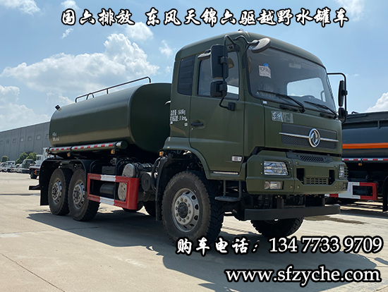 國六排放潤知星牌SCS5165GPSDFV6型六驅越野綠化噴灑車_東風天錦六驅森林消防水罐車_六驅園林綠化灑水車主要用于城鄉園林綠化灑水,噴藥等;主要裝置為水罐及泵.隨底盤選裝駕駛室.罐體有效容積8.7立方米.罐體外形尺寸(長×長軸×短軸)(mm) 4200×2350×1300.側、后防護材料為Q235B,側、后防護與車架焊接連接.后部防護裝置斷面尺寸(寬×高)50×120(mm),后部防護離地高度:460mm.ABS型號/生產廠家:3631010-C2000/東科克諾爾商用車制動系統(十堰)有限公司。東風天錦六驅越野綠化灑水車上裝配置:罐體采用優質碳鋼QB235板材,板材厚度4mm,罐體容積8.7立方,安裝取力器,60-90威龍大功率水泵可泵進泵出,后置工作平臺帶水炮射程25米,消防栓接口左右各一個,選裝駕駛室頂部安裝長條警燈帶喊話器,全車顏色軍綠,兩側噴涂白色森林消防字樣等。