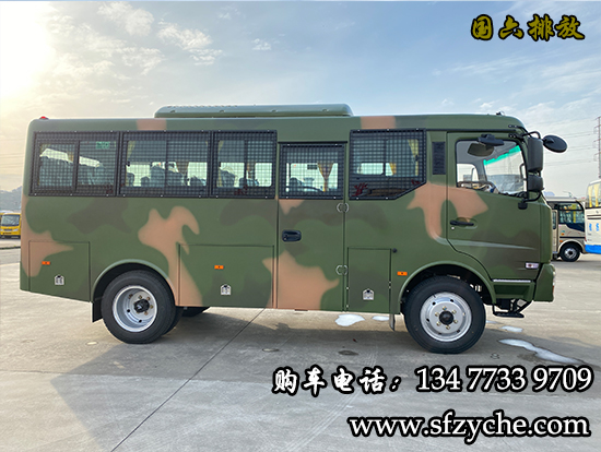 EQ6680ZT6D型10-23座四驅森林消防運兵車配置:采用東風EQ6640KZ6T型四驅越野三類底盤,發動機型號:D4.0NS6B170康明斯170馬力國六排放,4.0L排量帶增壓,變速箱為法士特手動六檔變速箱,整車外形尺寸長寬高(6800X2280X3155)mm ,軸距3800mm,驅動形式:4×4,離合助力,方向助力,斷氣剎,鼓式制動,ABS,行車記錄儀,車橋為東風德納2.7噸驅動前橋,5.5噸驅動后橋,3.5噸分動箱,輪胎為7.50R20鋼絲胎,工具箱3個,粘接式推拉玻璃,鋁花紋地板,中檔座椅,手動式外擺門,駕駛室正副司機門,整車窗簾,滅火器1個,備胎一個,其它為EQ6680ZT6D型四驅越野客車標配。選裝配置:東風派恩大功率頂置空調,獨立柴油鍋爐暖風,頂置警燈帶喊話器,頂置行李架帶爬梯,后對開門,中置氣動門等。