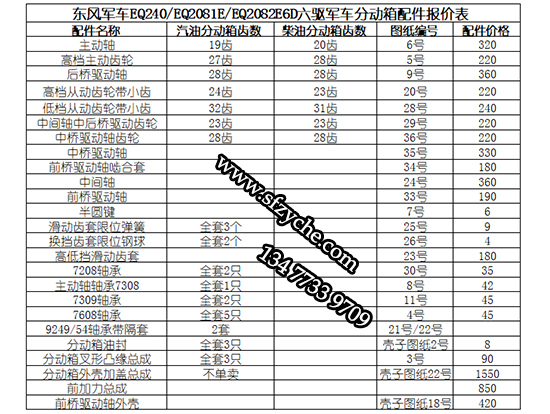 東風軍車EQ240/EQ2081E/EQ2082E6D六驅軍車分動箱配件報價表