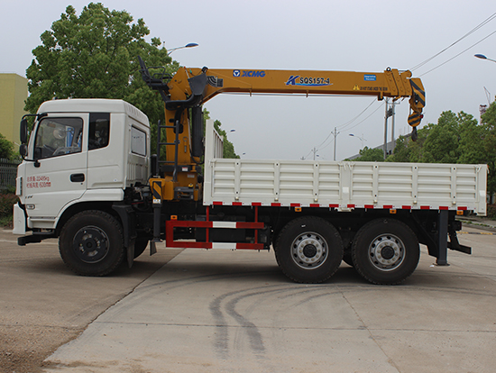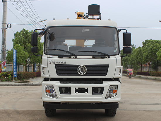 2. 采用徐工5噸折臂式隨車吊,SQZ105型徐工原廠吊機,最大起重質量5噸,三節臂,舉升高度11米,工作半徑8米,全液壓,全回轉,車廂尺寸4.25米,遠程油門控制,下操作。