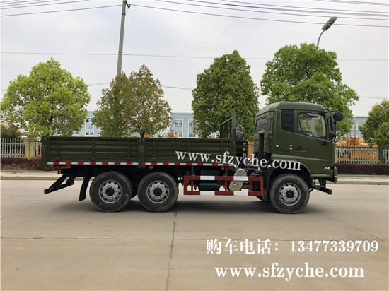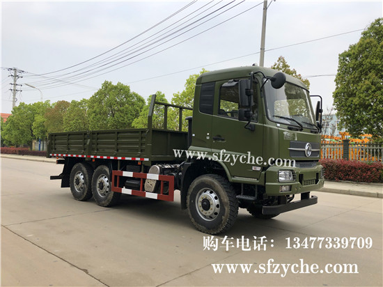 國六排放東風天錦(6×6)越野載貨汽車采用天錦高端六驅越野底盤,康明斯210馬力發動機國六排放,東風軍工六擋手動變速箱成就黃金動力組合,底盤采用純正東風沙豹6×6沙漠車血統,采用5噸級軍工德納原廠雙聯半軸式驅動前橋,后橋為經典耐用的東風軍用,杭齒分動箱軍工品質可靠安全,大梁在之前國五越野車基礎上升級為280mm加強型大梁,改裝越野隨車吊再用不用擔心大梁承載問題,東風天錦D530一排半豪華駕駛室可坐三人,駕駛室隔音效果好,制冷制熱設備完善,新款儀表臺更加動感,盡享駕乘樂趣,輪胎為大花紋越野輪胎通過能力強。